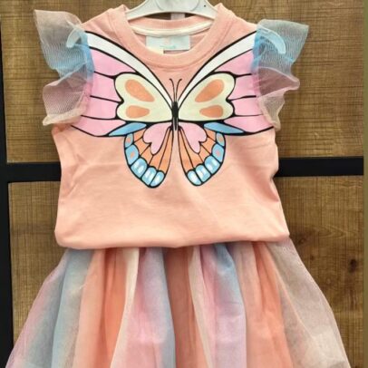 Kelebek Desenli Tshirt Renkli Tütü Etek Takım