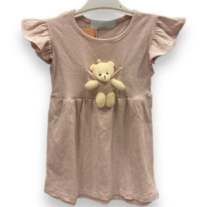 Pembe Kolları Fırfırlı Ayıcık Oyuncaklı Elbise