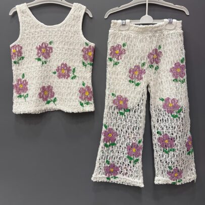 Mor Çiçek İşlemeli Atlet Pantalon Takım