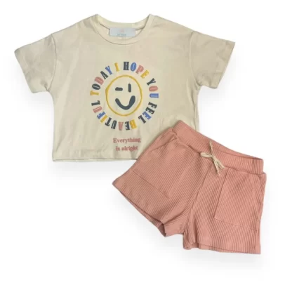 Gülen Surat Baskılı Everything Is Allright Yazılı Tshirt Şort Kız Çocuk Takım