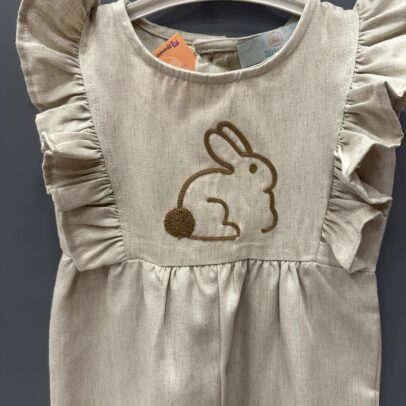 Tavşan Bakılı Kolları Fırfırlı Bej Tulum
