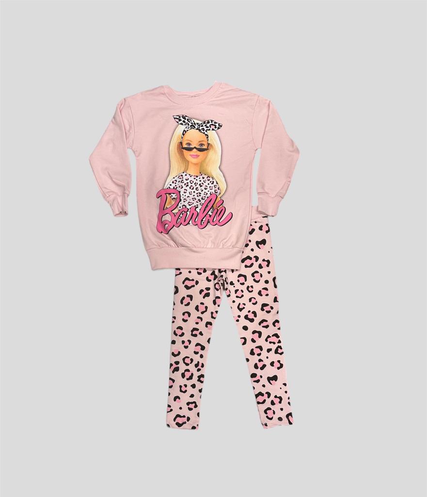 Barbie Baskılı Sweatshirt Leopar Desenli Tayt Takım